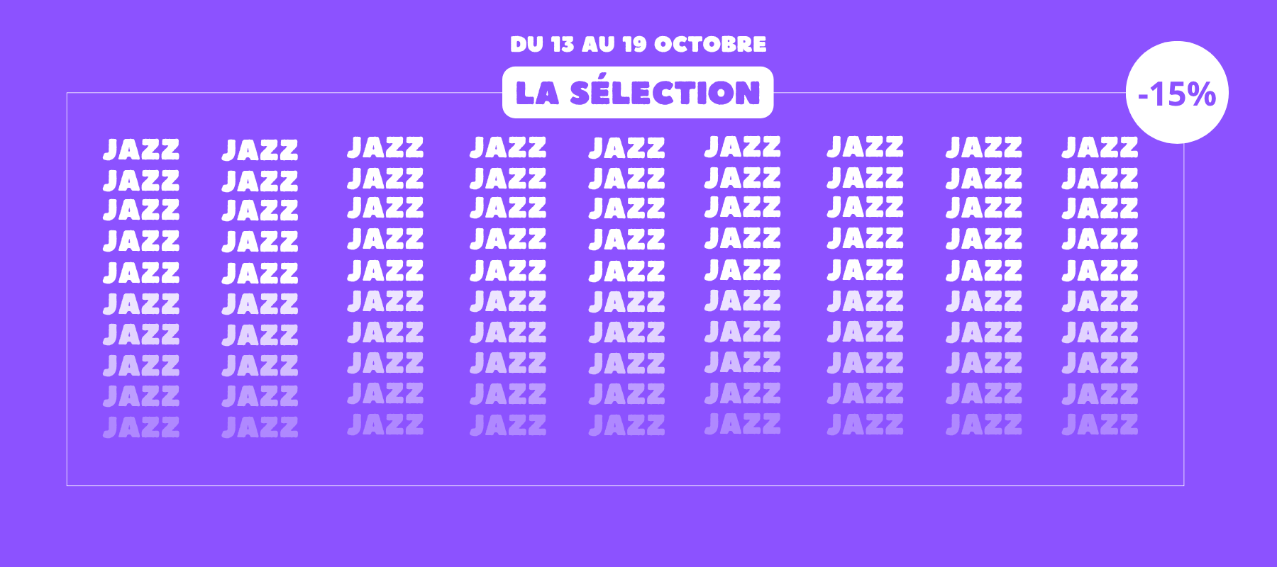 Profitez de 15 % de réduction sur une sélection soigneusement choisie par l’équipe du BacoShop. Nous avons réuni pour vous des albums qui célèbrent toute la richesse et la diversité du jazz, des grands classiques aux explorations les plus audacieuses. Une invitation à (re)découvrir des artistes inspirants et des œuvres qui font vibrer le cœur comme l’esprit.